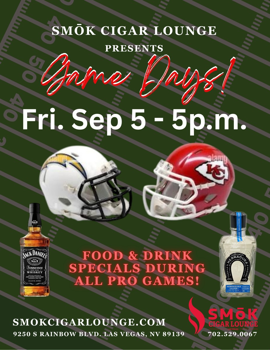 Come to SMōK Cigar Lounge for the Big Game Day festivities! No reservations needed (first come, first seated). No cover charge. No minimums! Just come join us for the Big Game and enjoy $10 Cocktails & Drink Specials and 1/2 price food options.
